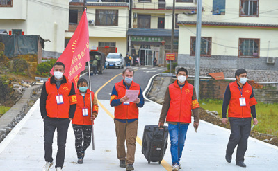 伊恩(左三)參加村里的疫情防控宣傳志愿服務工作。