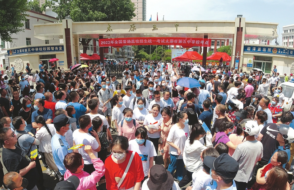 6月7日,太原五中考點(diǎn),結(jié)束語文考試的考生們走出考場(chǎng)。記者李兆民攝