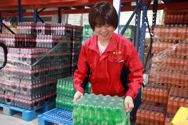 全國(guó)優(yōu)秀農(nóng)民工張海燕在公司倉(cāng)儲(chǔ)物流中心搬運(yùn)物品。人民網(wǎng)宋翠攝