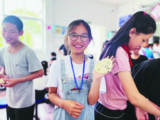 為什么會讓學生學做燒餅呢?校長王國寶這樣解釋:“縉云燒餅的制作技藝是國家級非物質文化遺產(chǎn),讓學生傳承這項技藝,也能讓他們感受縉云人記憶深處的味道。六年級的同學即將畢業(yè),以后他們會離開縉云展翅高飛,真心希望他們能記住縉云燒餅這個回家的路標?!?/p>