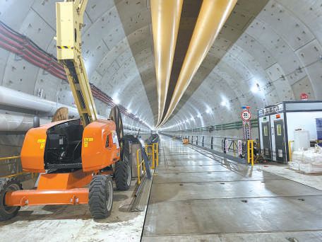 路面尚未攤鋪瀝青的西線隧道,整體走向也不是完全筆直平坦,而是帶有一些彎道、上下坡。車行約10分鐘,記者來到了“京華號(hào)”的尾部,在技術(shù)人員的遙控下,專業(yè)設(shè)備運(yùn)轉(zhuǎn)起來,用混凝土管片給隧道“貼磚”?!斑@是盾構(gòu)機(jī)每向前推進(jìn)兩米,便要完成的一個(gè)步驟?!笔装l(fā)建設(shè)公司東六環(huán)項(xiàng)目管理處專業(yè)工程師郭琪說,盾構(gòu)掘進(jìn)過程中,可以同時(shí)完成開挖、排土、碎石、出渣、支護(hù)、襯砌、封固等工序,實(shí)現(xiàn)隧道主體一次性成型。