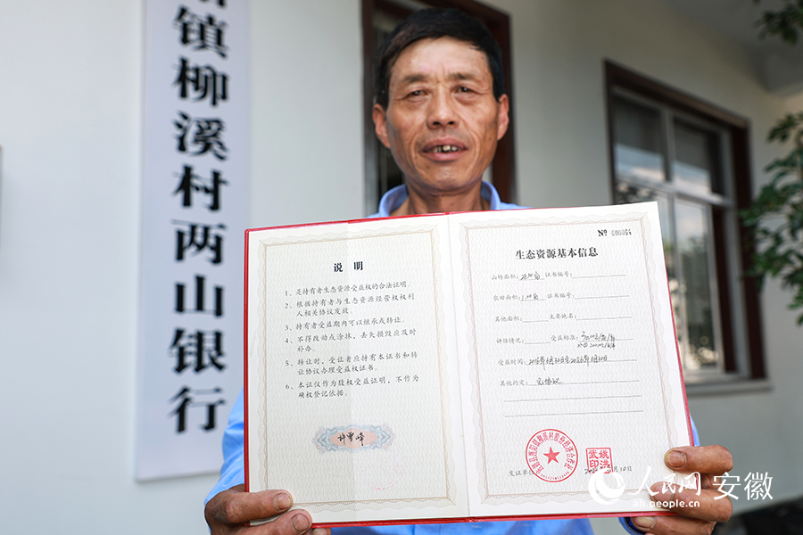 村民許雪峰展示《生態(tài)資源受益權證》。人民網(wǎng) 張俊攝