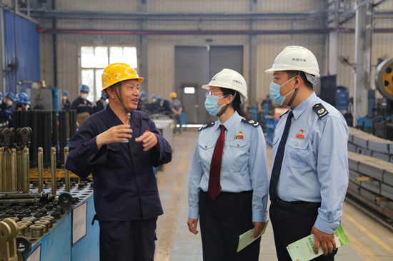 國(guó)家稅務(wù)總局石家莊市新華區(qū)稅務(wù)局工作人員到企業(yè)實(shí)地了解企業(yè)經(jīng)營(yíng)情況。劉靜攝