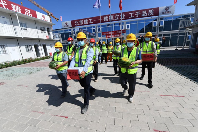 北京市已進(jìn)入盛夏高溫時(shí)節(jié),防暑降溫工作直接關(guān)系到勞動(dòng)者身體健康和企業(yè)生產(chǎn)安全。7月7日,由北京市總工會(huì)主辦的“最美勞動(dòng)者 微笑帶回家”系列活動(dòng)暨清涼送給首都建設(shè)者活動(dòng),在北京建工路橋集團(tuán)通州數(shù)據(jù)中心項(xiàng)目舉行,北京建工路橋集團(tuán)黨委書記王曉輝代表公司黨委、工會(huì)對建設(shè)者進(jìn)行慰問,向奮戰(zhàn)在施工一線建設(shè)者們送去清涼及防疫物資和真摯問候。