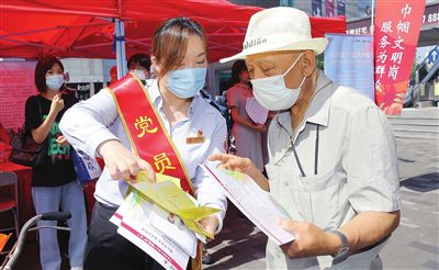 7月13日上午,天津市和平區(qū)濱江道樂賓百貨門前,市第十二次黨代會精神宣講展位彩旗招展,群眾絡(luò)繹不絕。來自衛(wèi)健、科技、政法、交通、公共服務(wù)、社會組織等方面50多個(gè)各級各類的為民服務(wù)窗口型“巾幗文明崗”“巾幗建功先進(jìn)集體”志愿者齊聚,以學(xué)習(xí)宣傳貫徹市第十二次黨代會精神暨“迎盛會、鑄忠誠、強(qiáng)擔(dān)當(dāng)、創(chuàng)業(yè)績”巾幗文明崗為群眾服務(wù)活動(dòng)為主題,開展多項(xiàng)便民服務(wù)。