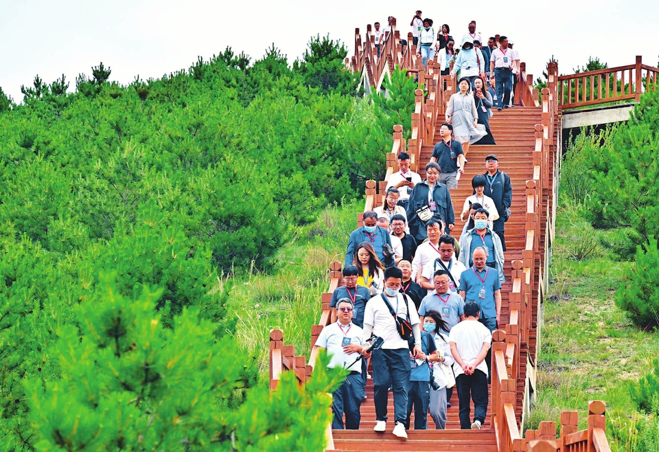 7月17日,來(lái)自全國(guó)各地的游客在大同市云州區(qū)火山群國(guó)家地質(zhì)公園狼窩山景區(qū)暢游。近年來(lái),云州區(qū)完成火山群綠化30萬(wàn)畝,建設(shè)火山旅游路50多公里,配套建設(shè)了火山地質(zhì)廣場(chǎng)、火山觀景臺(tái)、火山地質(zhì)公園博物館等,深受游客青睞。(劉通 王中勛攝)