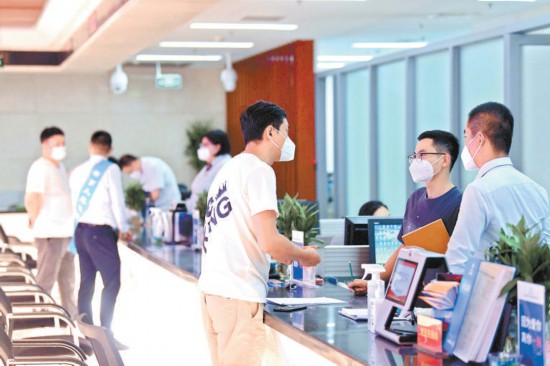 昨天,北京經(jīng)濟技術(shù)開發(fā)區(qū)政務服務大廳,工作人員正在熱情接待企業(yè)代表辦理相關(guān)業(yè)務。本報記者 和冠欣攝
