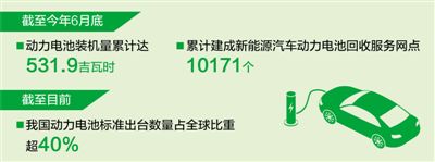 回收利用體系初步建立。截至今年6月底,我國已累計(jì)建成10171個(gè)新能源汽車動力電池回收服務(wù)網(wǎng)點(diǎn),基本實(shí)現(xiàn)退役電池就近回收。