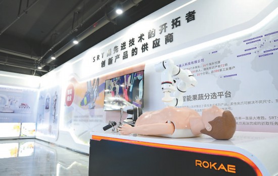 中關村機器人產業(yè)創(chuàng)新中心展廳內的彩超機器人。本報記者 崔家寧攝