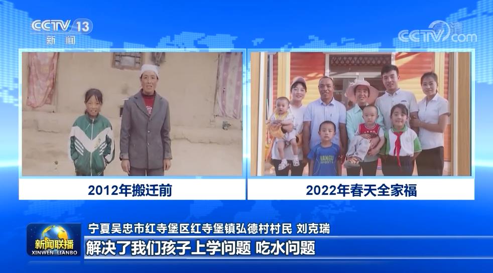 寧夏吳忠市紅寺堡區(qū)紅寺堡鎮(zhèn)弘德村村民 劉克瑞:我們一家人從南部山區(qū)搬到了紅寺堡。解決了我們孩子上學問題、吃水問題,就業(yè)也很方便,醫(yī)院也在家門口,一年下來,我們家毛收入就達到了12萬(元)左右,過上了幸福美好的新生活。