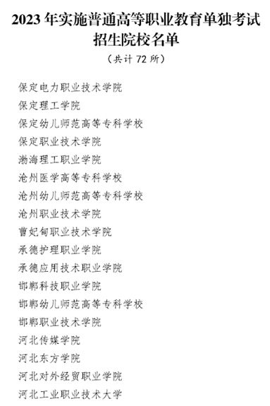 2023年河北72所高職院校實(shí)施單獨(dú)考試招生