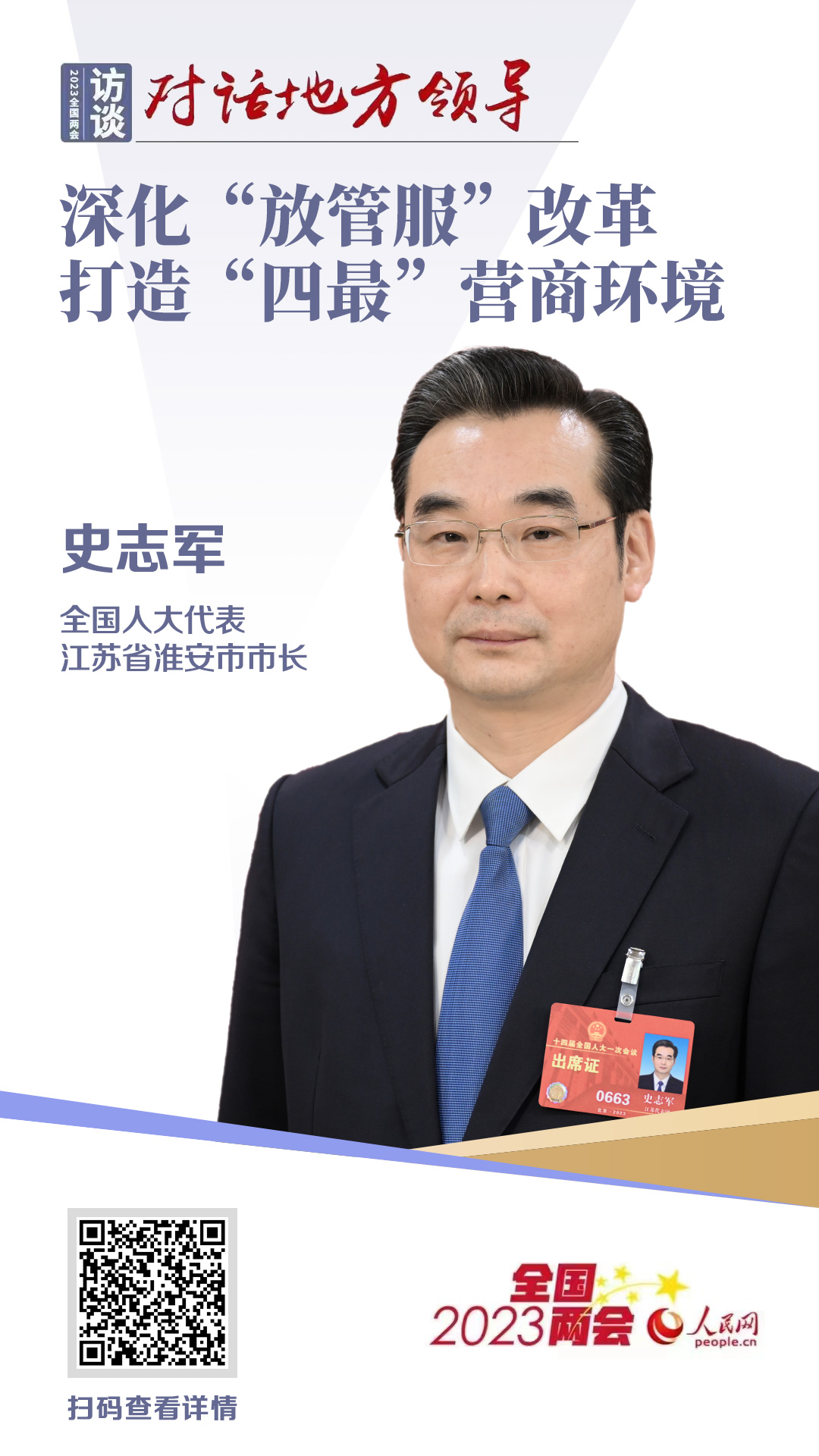 全國人大代表、淮安市市長史志軍:深化“放管服”改革 打造“四最”營商環(huán)境
