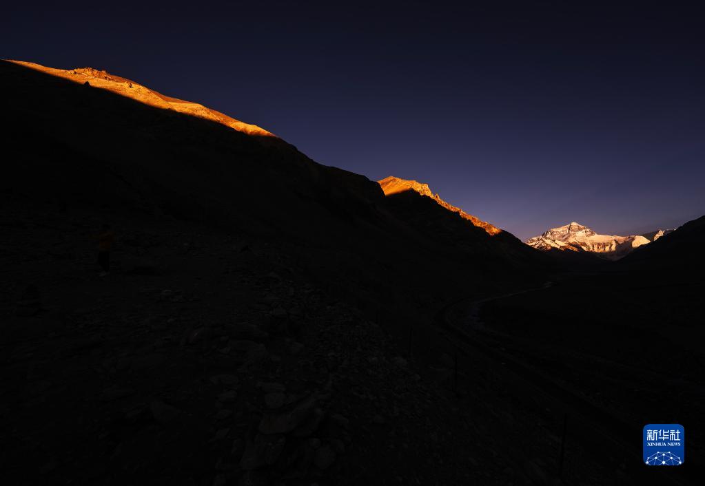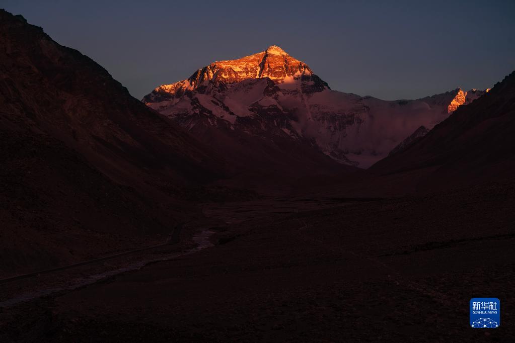 6月4日拍攝的太陽完全落山之后的珠峰。新華社記者 費(fèi)茂華 攝