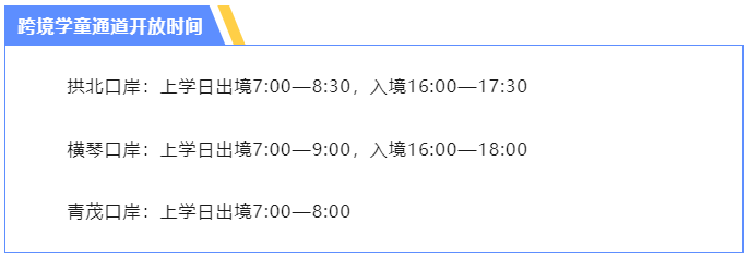 跨境學(xué)童通道開放時間。圖片來源:珠海邊檢總站官方微信截圖