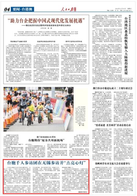 人民日?qǐng)?bào)海外版|臺(tái)胞千人參訪團(tuán)在無(wú)錫參訪并“點(diǎn)亮心燈”
