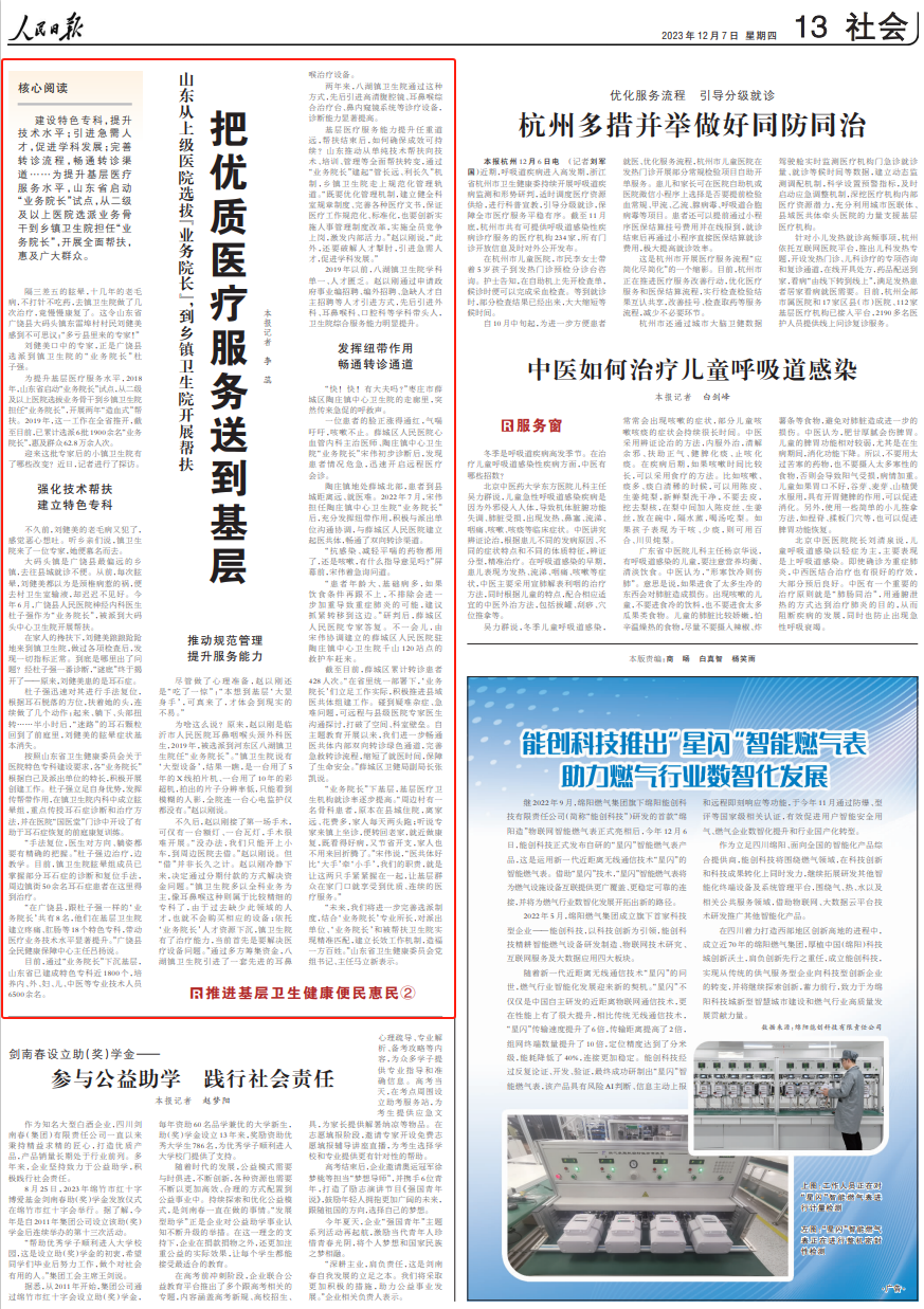 建設(shè)特色專科,提升技術(shù)水平;引進(jìn)急需人才,促進(jìn)學(xué)科發(fā)展;完善轉(zhuǎn)診流程,暢通轉(zhuǎn)診渠道……為提升基層醫(yī)療服務(wù)水平,山東省啟動(dòng)“業(yè)務(wù)院長”試點(diǎn),從二級(jí)及以上醫(yī)院選派業(yè)務(wù)骨干到鄉(xiāng)鎮(zhèn)衛(wèi)生院擔(dān)任“業(yè)務(wù)院長”,開展全面幫扶,惠及廣大群眾。