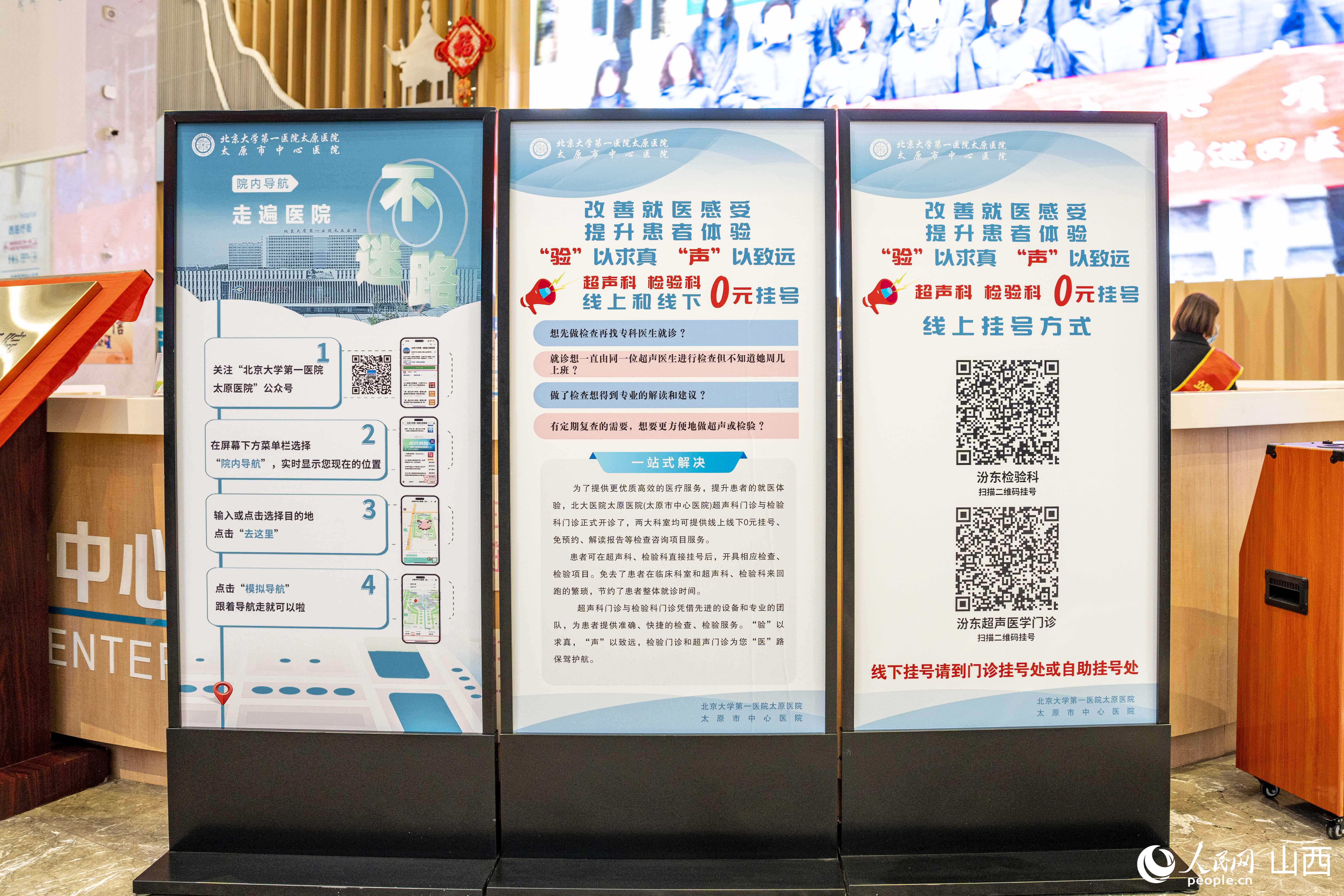 北大醫(yī)院太原醫(yī)院門診大廳設立相關內容展板。人民網(wǎng) 盧鵬宇攝