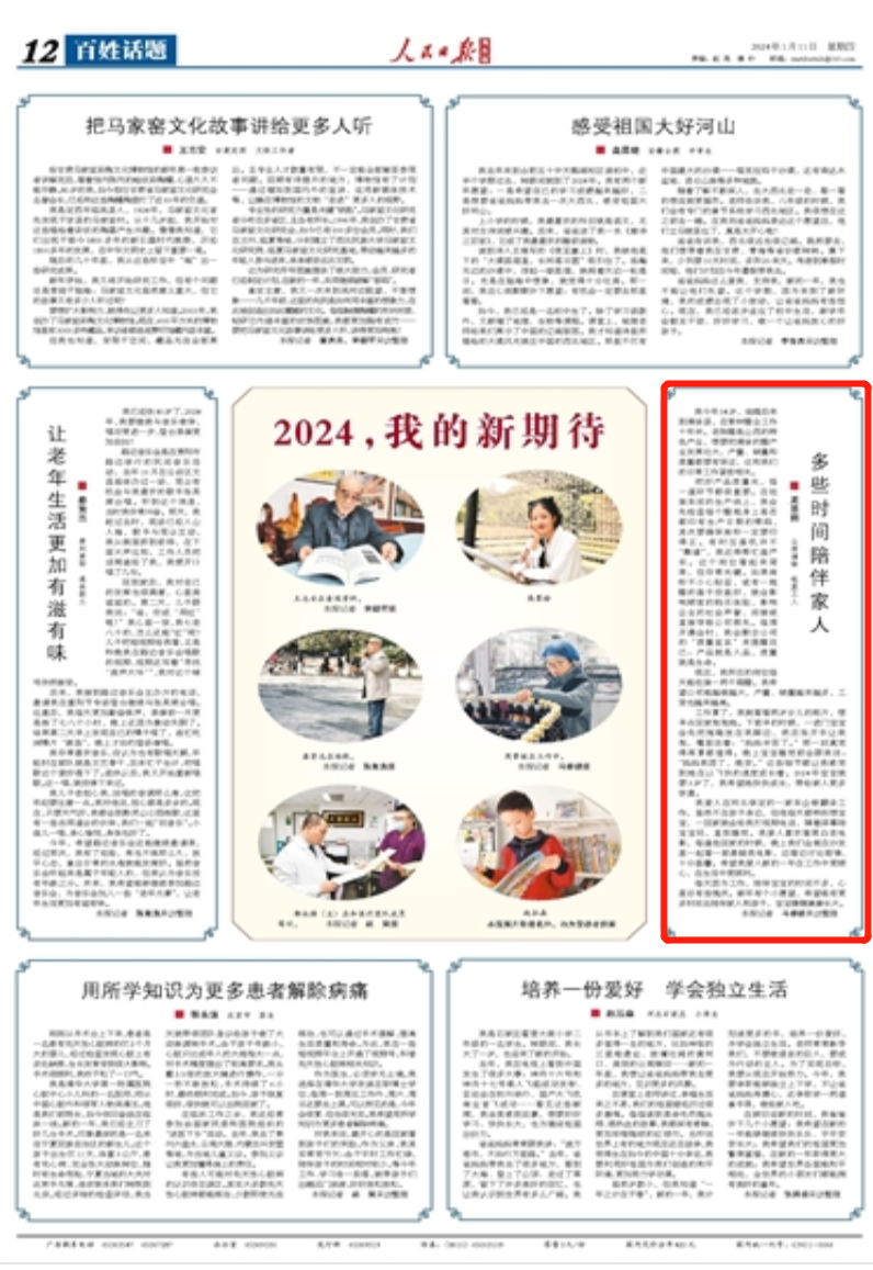 對我來說,最開心的是回家看到孩子們的笑臉。作為父親,我其實常覺虧欠:由于平時工作忙碌,陪伴孩子的時間相對較少。等今年工作、學習告一段落,就帶孩子們出趟遠門旅游,好好放松放松。