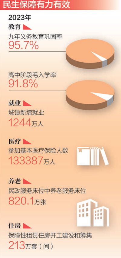 數(shù)據(jù)顯示,2023年,全國居民人均可支配收入實際增長6.1%,快于同期GDP增速;全國城鎮(zhèn)新增就業(yè)1244萬人,就業(yè)保持總體穩(wěn)定;疊加降價和醫(yī)保報銷,2023年協(xié)議期內(nèi)談判藥為患者減負(fù)超2000億元……一張張民生清單,給百姓生活帶來了看得見、摸得著的可喜變化,不斷增強人民群眾的獲得感、幸福感、安全感。