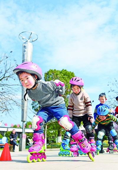 頭戴鮮艷頭盔,腳踩輪滑鞋,幾個(gè)四五歲的“小豆丁”正在教練指導(dǎo)下練習(xí)輪滑。起步、擺臂、穿越障礙,不小心滑倒了,也會(huì)一骨碌爬起來繼續(xù)向前。