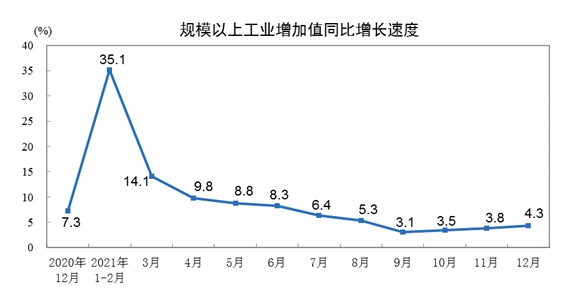 國家統(tǒng)計局:2021年12月份規(guī)模以上工業(yè)增加值增長4.3%