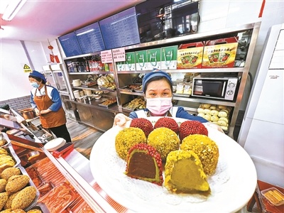 此外,護國寺小吃廣外店、二七劇場店、亦莊店、紅蓮店今年首次創(chuàng)新推出了櫻花版艾窩窩,淡淡的粉色煞是惹人喜愛,“我們用紅菜頭熬水蒸糯米,再包入日常的餡料,一經(jīng)推出,吸引了很多年輕消費者購買。”相關(guān)負責人張羽經(jīng)理表示,櫻花版艾窩窩將供應(yīng)到4月中旬,滿足市民踏青時外帶需求。