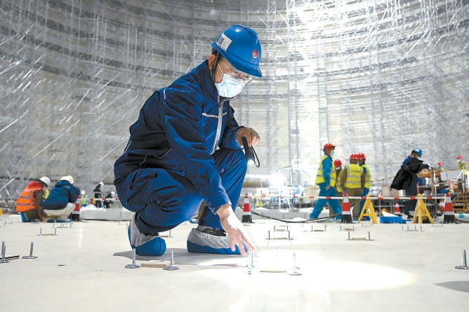 目前,一期工程的兩座薄膜儲罐正在安裝絕熱板,這是內(nèi)罐施工的核心工序。“絕熱板就像暖水瓶里的隔熱層?!表椖抗こ坦芾聿拷?jīng)理詹一鳴介紹,內(nèi)罐施工預計今年8月完成,經(jīng)過氣密性試驗、氮氣置換等一系列工序,就可以迎接LNG的到來了。