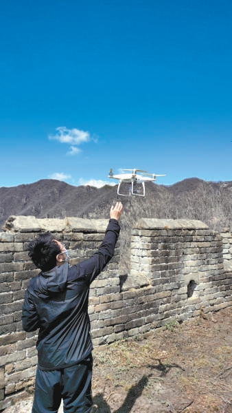 數(shù)據(jù)采集采用傾斜攝影、激光雷達(dá)、三維激光雷達(dá)等多源融合、空地融合技術(shù),盡可能完整地獲取長城高精度三維數(shù)據(jù)?!皟A斜攝影的無人機(jī)上搭載的相機(jī)有5個鏡頭,根據(jù)預(yù)先設(shè)定的航線,5個攝像頭可以從5個角度同時拍攝到墻體、地面等,采集到更完整、更精準(zhǔn)的數(shù)據(jù)。”現(xiàn)場技術(shù)負(fù)責(zé)人亢瑋介紹。無人機(jī)飛不了的敵臺,就人工拍攝,一個保存相對完整的敵臺需要拍3000張左右的照片。
