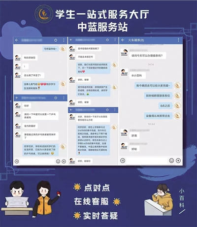 北京工業(yè)大學(xué)中藍(lán)校區(qū),線上實(shí)時(shí)問答平臺,第一時(shí)間給予學(xué)生回應(yīng)。學(xué)校供圖