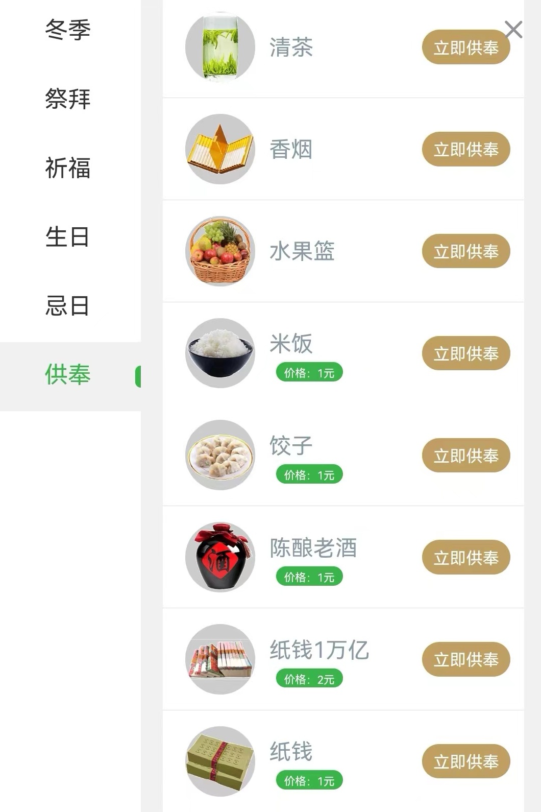 記者發(fā)現(xiàn),用戶免費(fèi)創(chuàng)建“網(wǎng)上紀(jì)念館”后,可以在紀(jì)念館進(jìn)行“祭拜、祈福、獻(xiàn)花、供奉”等虛擬活動。而在推出的這些虛擬服務(wù)中,有些是免費(fèi)的,有些則要收取費(fèi)用。比如,在某平臺送出一個“生日快樂”蛋糕,需要微信支付2元,送一疊“忌日紙錢”需要支付1元,一份“米飯”1元。