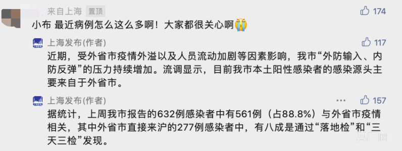 上周上海報(bào)告的632例陽(yáng)性感染者中有561例(占88.8%)與外省市疫情相關(guān)(央廣網(wǎng)發(fā) 截自:上海發(fā)布微信公眾號(hào))
