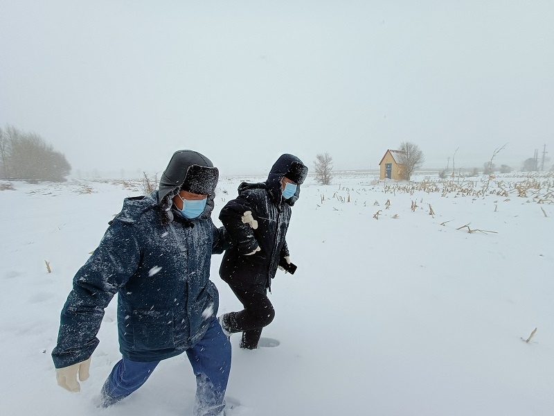 國網(wǎng)阿爾山市供電公司員工進行雪后特巡(李欣欣 攝)