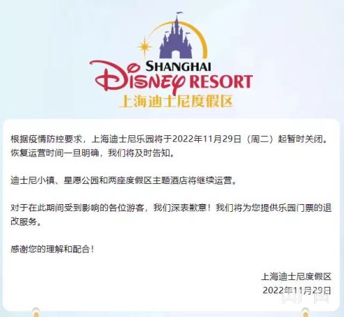 央廣網上海11月29日消息(記者林馥榆)記者從上海迪士尼度假區(qū)獲悉,根據疫情防控要求,上海迪士尼樂園于11月29日起暫時關閉,恢復運營時間待定。