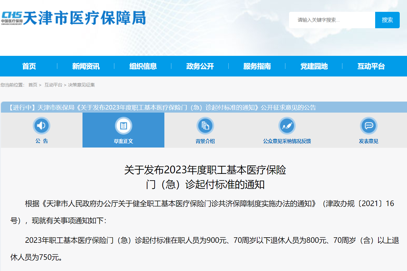天津職工醫(yī)保門(急)診起付標準擬調(diào)整