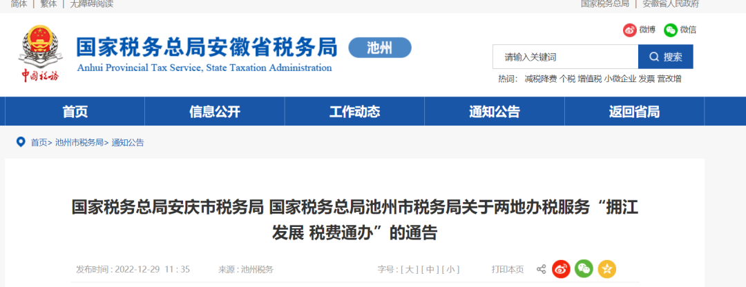 近日,為方便安徽安慶池州兩地納稅人繳費人辦理跨區(qū)域涉稅事項,落實安慶池州“一江兩岸擁江發(fā)展”規(guī)劃,進一步優(yōu)化稅收營商環(huán)境。國家稅務總局安慶市稅務局、國家稅務總局池州市稅務局發(fā)布《關于兩地辦稅服務“擁江發(fā)展稅費通辦”的通告》。
