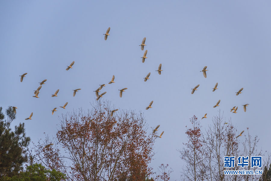 日前,在廣西百色市德??h城關鎮(zhèn)西讀村那西屯的田野上,成群白鷺或在覓食嬉戲、或在空中飛舞、或在樹梢停歇,與青山、綠水、紅楓構成一幅美麗的自然生態(tài)畫卷。