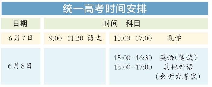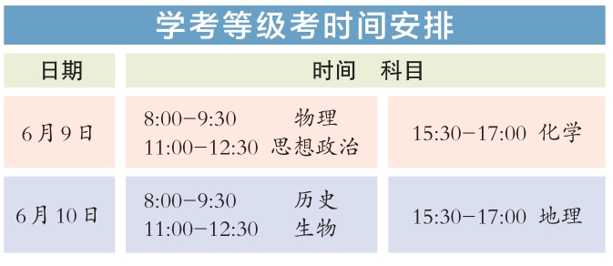 今年統(tǒng)一高考考試科目為語文、數學、外語3門,滿分均為150分。其中,英語聽說考試滿分50分,其他外語(非英語)聽力考試滿分30分,兩次聽說(聽力)考試的最高成績與其他部分試題成績一同組成外語科目成績計入高考總分。學考等級考科目為思想政治、歷史、地理、物理、化學、生物6門,由考生自主選擇3門參加考試,每科目滿分100分。參加本科招生錄取的考生總成績由3門統(tǒng)一高考成績和考生選考的3門學考等級考成績構成,總成績滿分值為750分。