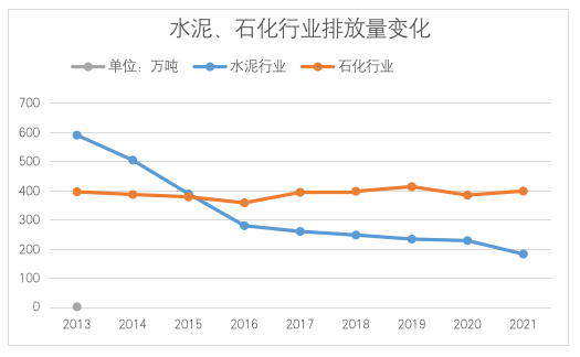 北京市水泥、石化重點碳排放單位歷年排放變化