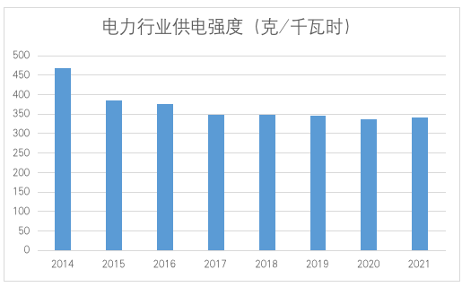 北京市電力行業(yè)排放強度變化
