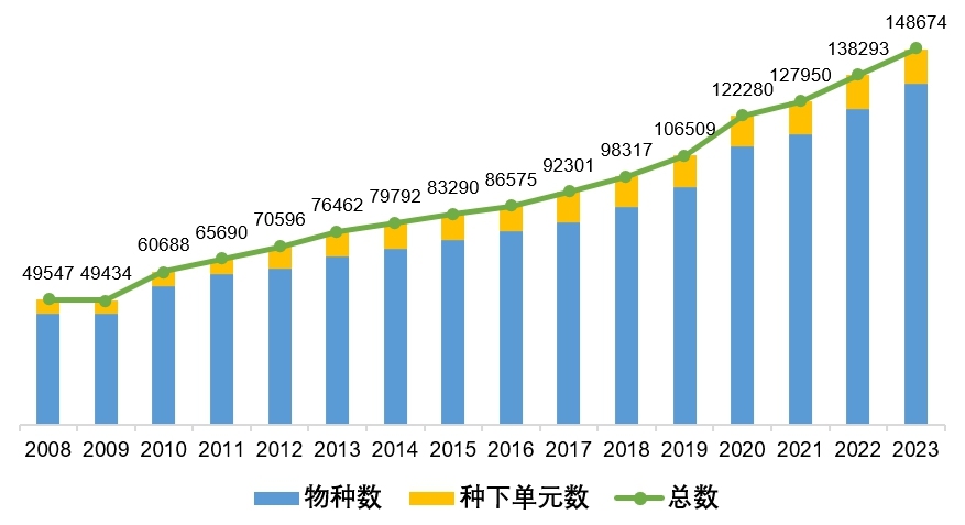 《中國生物物種名錄》歷年數(shù)據(jù)量變化圖 圖片來源:中科院生物多樣性委員會微信公眾號