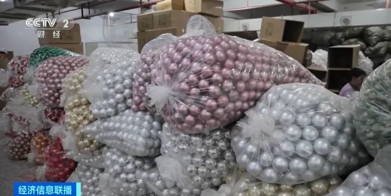 在義烏一家生產(chǎn)圣誕球的企業(yè)里,工人們忙著把剛剛組裝完的成品運往倉庫。負(fù)責(zé)人告訴記者,今年他們的訂單同比增長30%左右。