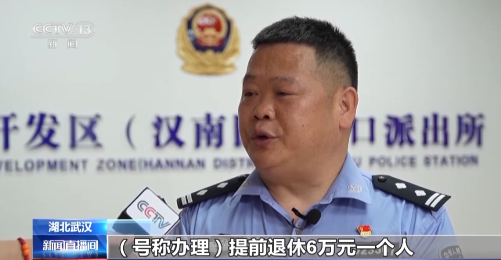 武漢經(jīng)濟技術開發(fā)區(qū)公安分局沌口派出所民警 溫次文:對方號稱辦理提前退休6萬元一個人,補交醫(yī)保,社保手續(xù)費4萬元一個人,掛靠機關事業(yè)單位退休3萬元一個人,增加工齡,提高退休待遇4萬元一個人,這4個項目下來估計每個人要交17萬元左右。