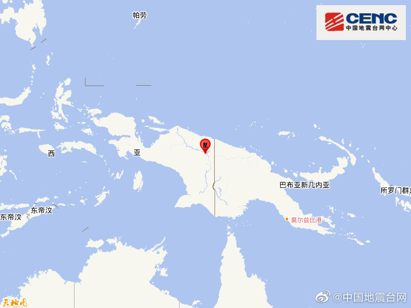 中國地震臺網(wǎng)正式測定:07月03日10時51分在印尼巴布亞?。暇?.90度,東經(jīng)140.25度)發(fā)生5.3級地震,震源深度20千米。