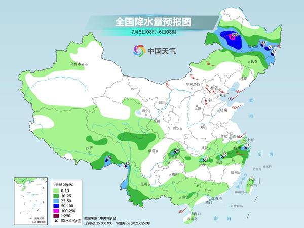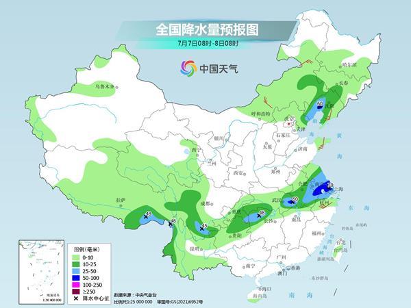 后天,內(nèi)蒙古東南部、東北地區(qū)南部、江淮、江南北部、四川西部和南部、貴州北部、云南西部等地部分地區(qū)有中到大雨,其中,遼寧西部、安徽東南部、江蘇中南部、湖北東部等地部分地區(qū)有暴雨(50~70毫米)。