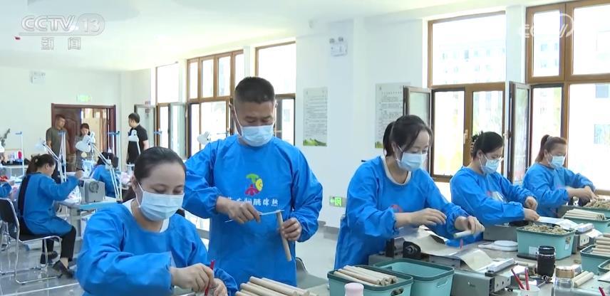 在內(nèi)蒙古鄂爾多斯市文瀾社區(qū)的艾草園創(chuàng)業(yè)就業(yè)基地,工人們正在加工艾條、艾草枕頭、坐墊、香包等產(chǎn)品。這里的工人都是文瀾社區(qū)的居民。