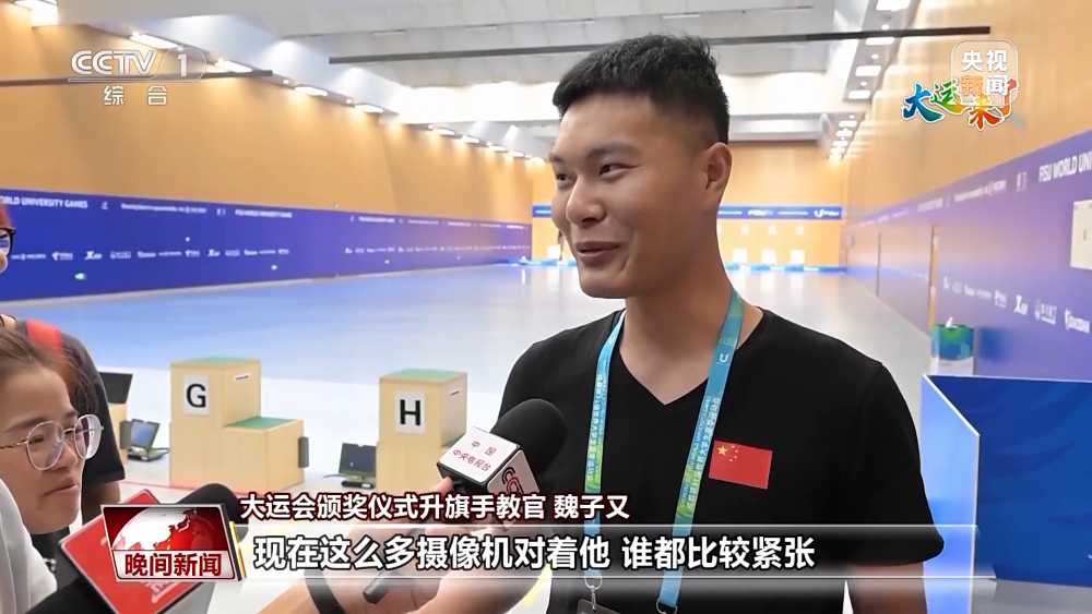 大運(yùn)會(huì)頒獎(jiǎng)儀式升旗手教官 魏子又:她們也都還是十幾歲的孩子,這么多攝像機(jī)對(duì)著她們,都比較緊張,還是需要經(jīng)常面對(duì)鏡頭來(lái)成長(zhǎng)自己。