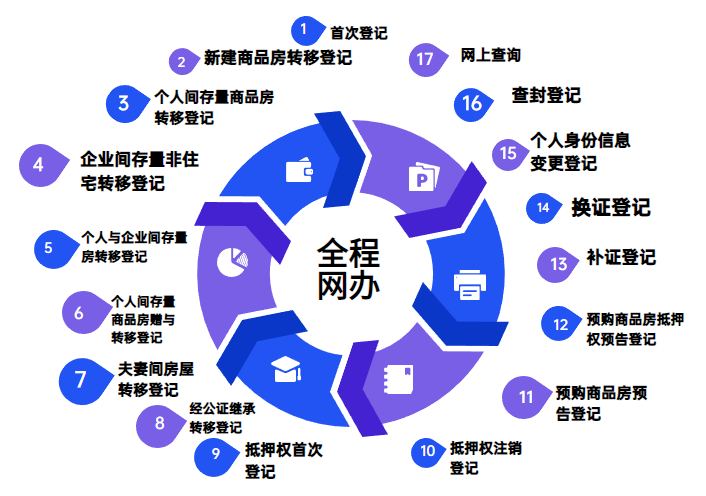 ?。?7項(xiàng)常見(jiàn)登記業(yè)務(wù)的“全程網(wǎng)辦”示意圖,圖源:北京市規(guī)劃和自然資源委員會(huì)微信公眾號(hào),央廣網(wǎng)發(fā))