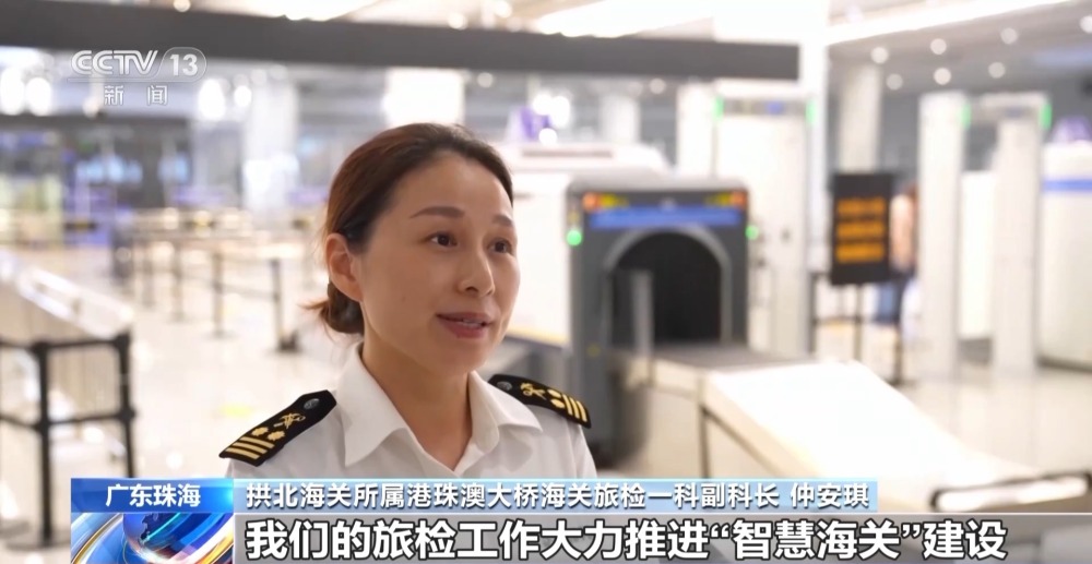 拱北海關(guān)所屬港珠澳大橋海關(guān)旅檢一科副科長 仲安琪:我們的旅檢工作大力推進“智慧海關(guān)”建設(shè),在智能CT機、高低溫探測儀等智慧旅檢監(jiān)管設(shè)備的輔助下,我們監(jiān)管更加“耳聰目明”。此外,我們還通過信息互換、視頻共享、安?;ブ仁侄渭訌娕c港澳海關(guān)、聯(lián)檢單位、大橋管理部門等單位的應(yīng)急處突合作,保障人流高峰時段旅客高效通關(guān)。