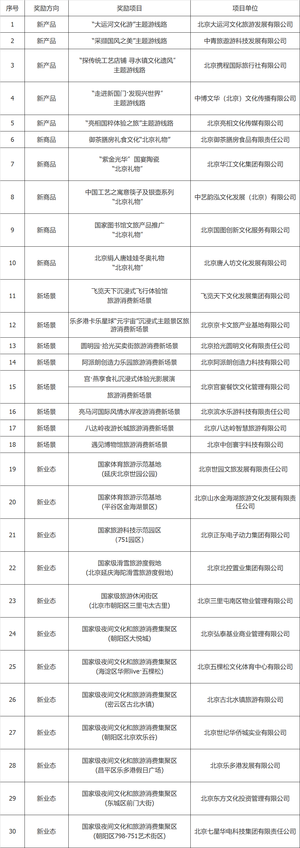 北京文旅局確定2022年北京市擴大文旅新消費獎勵項目名單