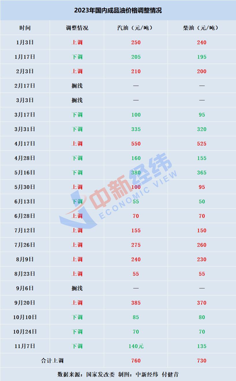 中新經(jīng)緯梳理發(fā)現(xiàn),國內(nèi)成品油在今年已歷經(jīng)二十二輪調(diào)整,呈現(xiàn)“十漲九跌三擱淺”的格局,汽油價格累計上漲760元/噸,柴油價格累計上漲730元/噸。